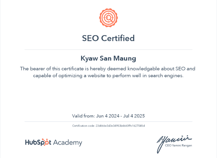 Since 2024, I have been pursuing a Bachelor of Information System in Software Engineering at LITHAN Educlaas, where I am also a Higher National Diploma in Computing Level-5 student. Based in Yangon, Myanmar, I am committed to advancing my knowledge and skills in software engineering and computing.